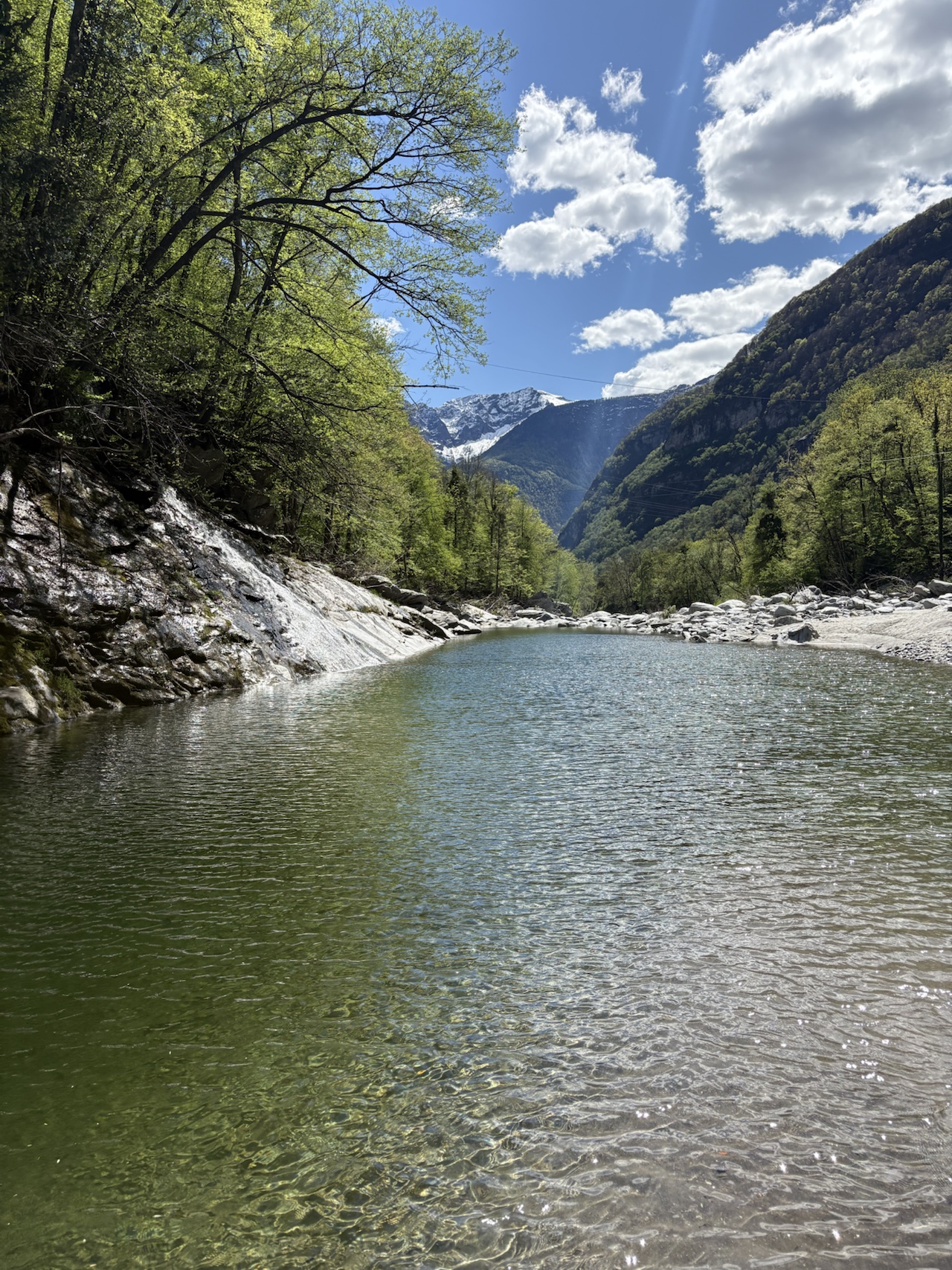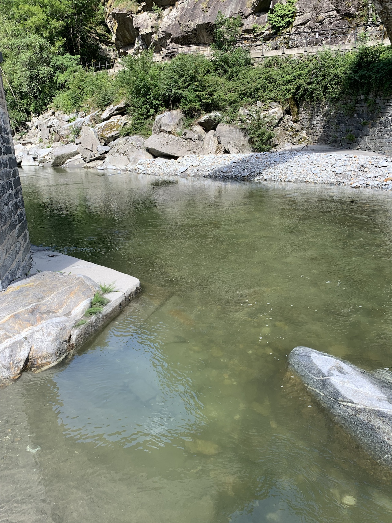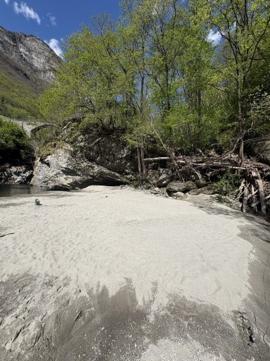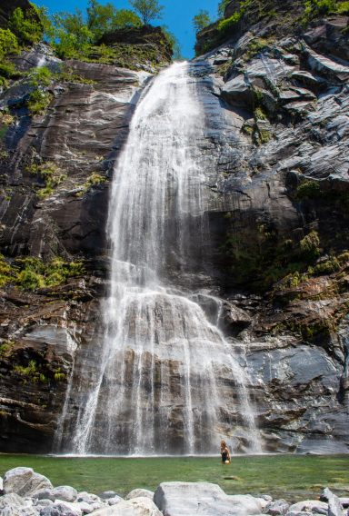 Baden: Die Maggia ist bekannt für ihre schönen Wasserfälle und Naturschwimmbecken. Die grossen weissen Steine und der feine Sand laden zum Sonnen ein. Die Felsen und tiefen Naturbecken laden zum Klippenspringen ein.